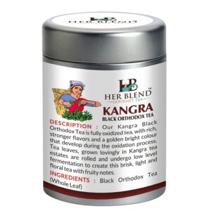 Kangra tea is famous for its rare look and taste. HerBlend Kangra black orthodox tea is made lovingly from the tea leaves grown in the Kangra tea estate. Further, these tea leaves are rolled and fermented uniquely to make a light, brisk and fruity touch. Enjoy the richness of Kangra tea!